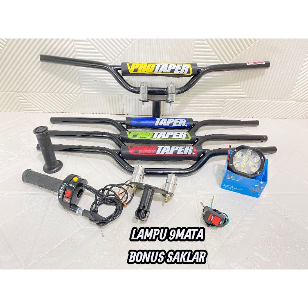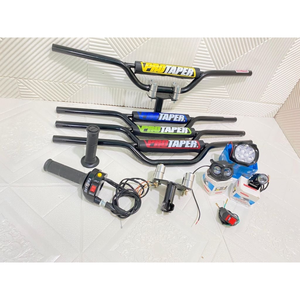 Paket komplit stang crf dtraker+dudukan/adaftor stang+gas spontan 2tombol+lampu led=bonus saklar lampu