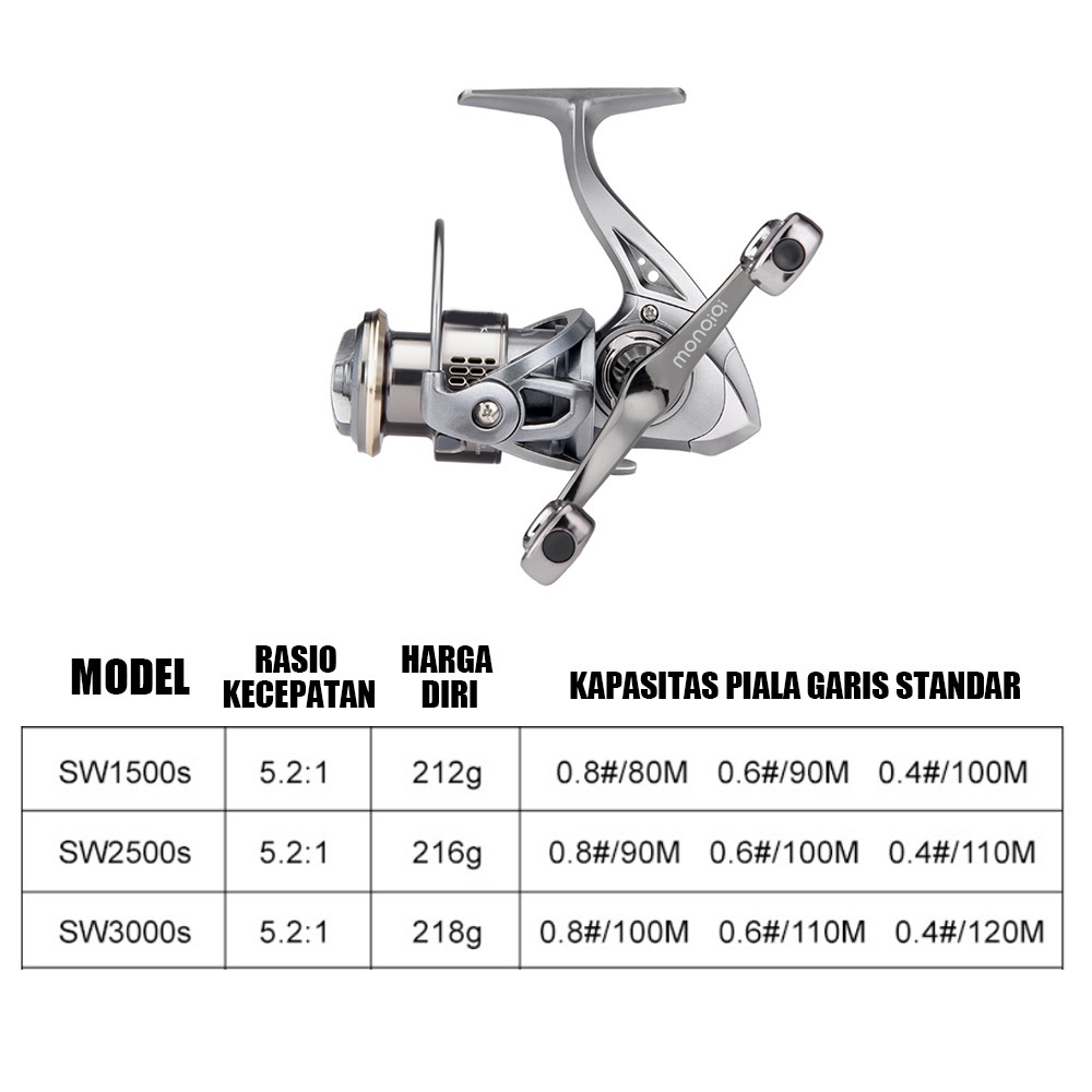 MONQIQI 5.2:1 Fishing Reel Dengan Pegangan Pegangan Ganda Seri / Max Drag 10kg Gulungan Senar Pancing/ Metal Spool ReelJ