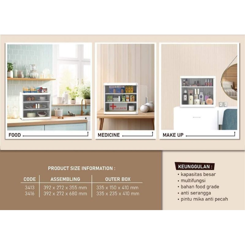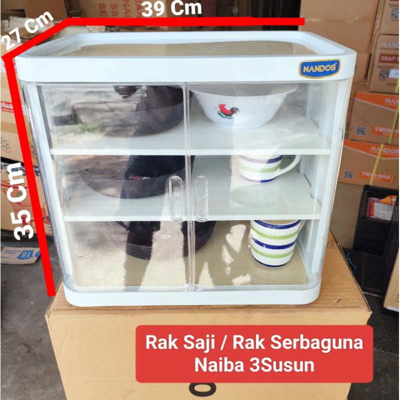Rak Lemari Saji Food Cabinet Bistro Naiba Nandos Serbaguna Susun 3 Tingkat 2 Pintu