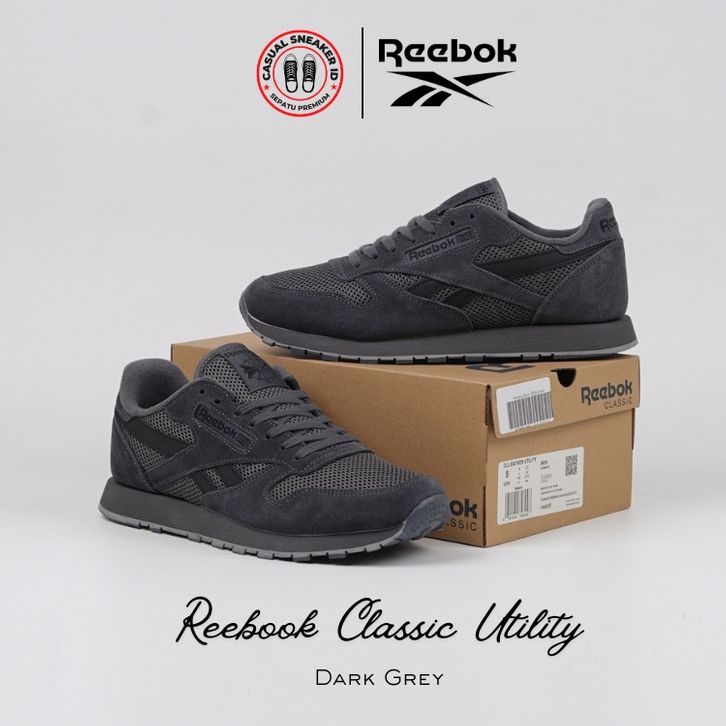 Sepatu Sneakers Reebok Classic Utility Dark Grey BNIB Casual Pria Wanita Original BNIB Best Seller Size 39-44