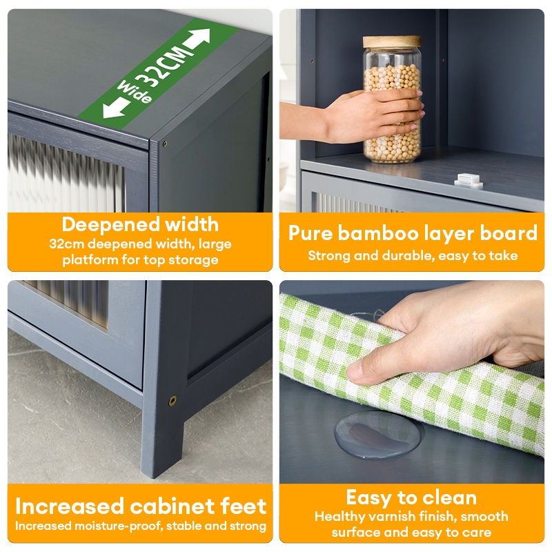 Rak Dapur Lemari Dapur Rak Microwave Dapat Ditumpuk Penyimpanan Sederhana Bambu Bumbu Makanan 140CM