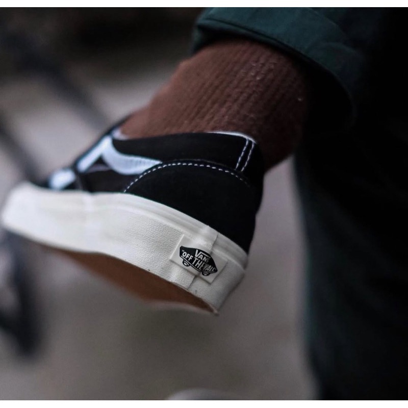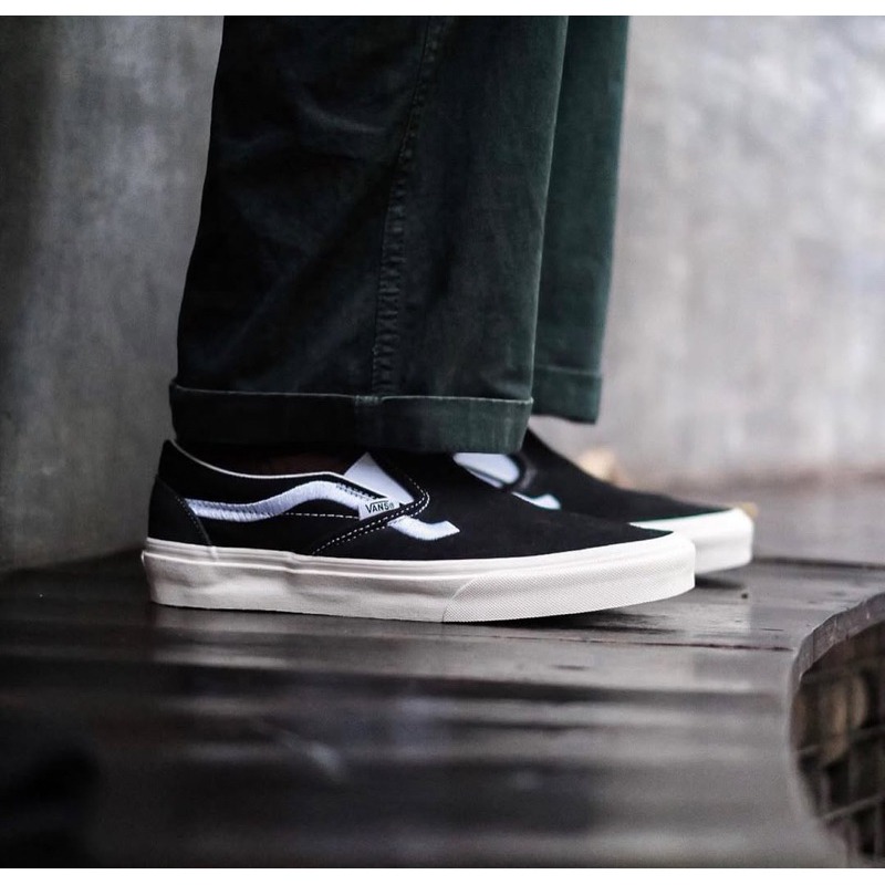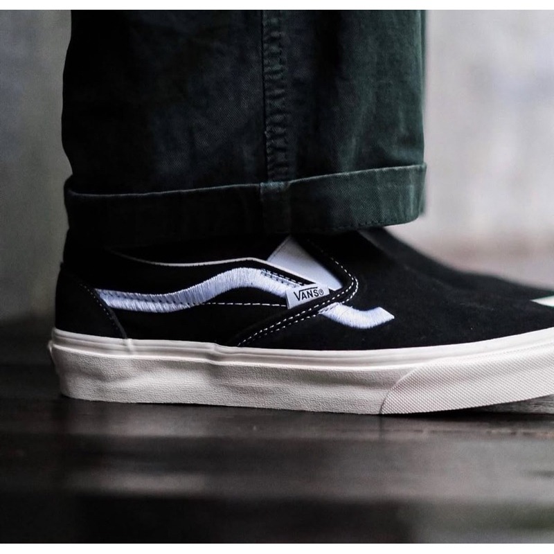 SEPATU VANS SLIP ON SIDE STRIPE BLACK WHITE ORIGINAL