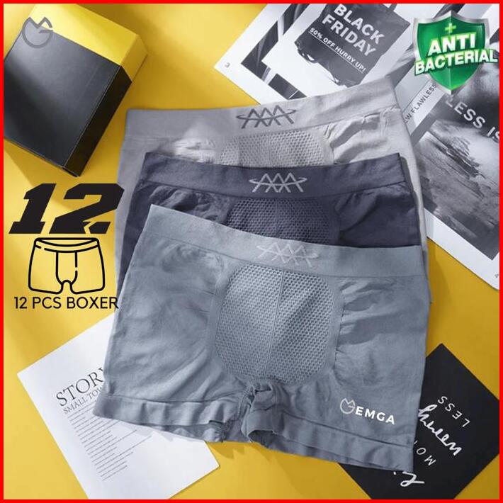 Celana Dalam Pria Isi 12 Boxer Pria Emga Bx1f Pakaian Dalam Breathable Comfortable Seamless Kolor Briefs Pendek Cd Under