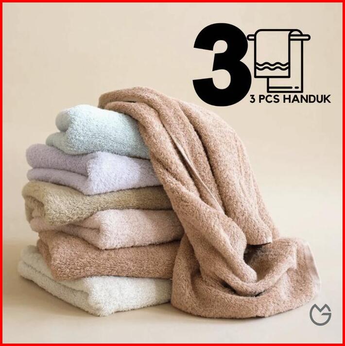 Set Isi 3 Handuk Mandi Dewasa Microfiber Emga Towel Tj1c Super Jumbo Pria Wanita Anak Motif Polos Warna