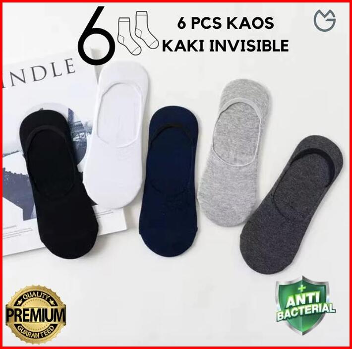 Emga Kaos Kaki Invisible Paket Isi 6 Pcs S01b Invisible Socks Pria Wanita Pendek Hidden Sock