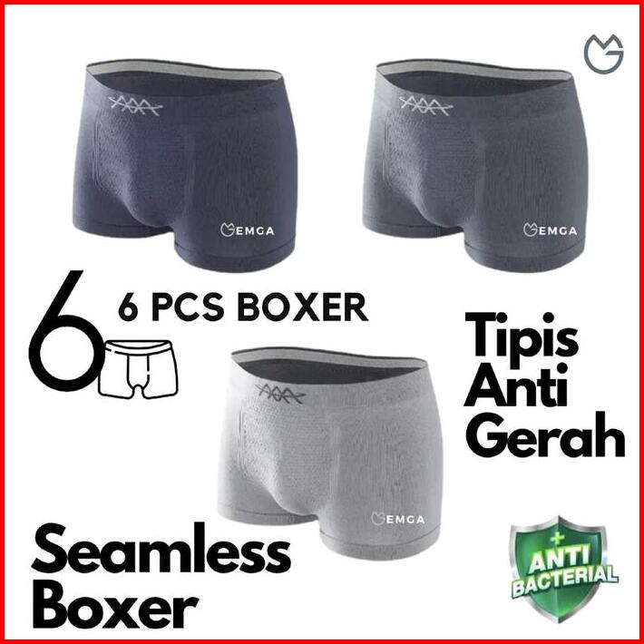 Celana Dalam Pria Seamless Emga Bx1ab Boxer Isi 6 Pakaian Dalam Breathable Comfortable Kolor Briefs Pendek Cd Underwear