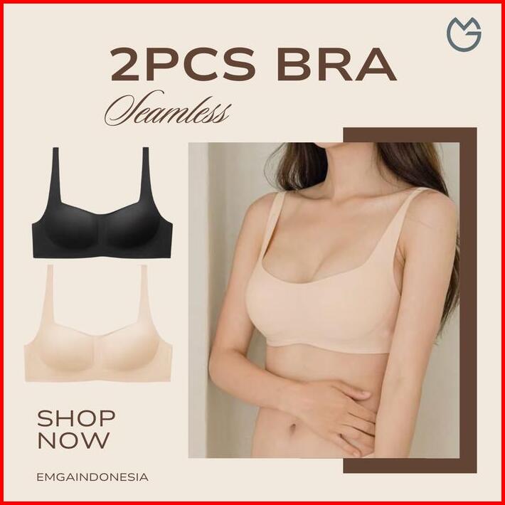 2 Pcs Bra Tanpa Kawat Seamless Tanpa Jahitan Emga Bh Bss2d Sporty Wireless Bra Pakaian Dalam Wanita Dewasa Kait Belakang