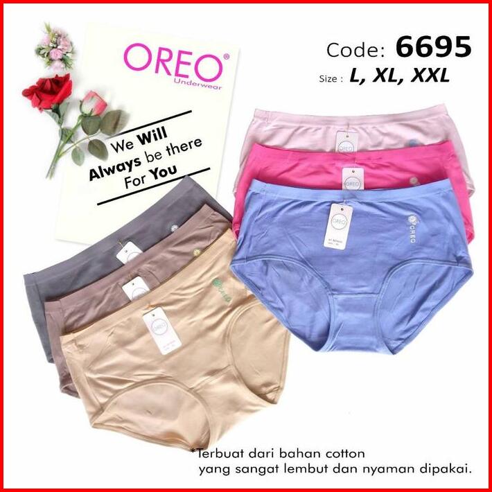Oreo 12pcs Bf-6695 Celana Dalam Wanita Katun Polos