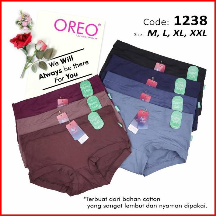Oreo 12pcs Bf-1238 Celana Dalam Wanita Katun Spandek Polos