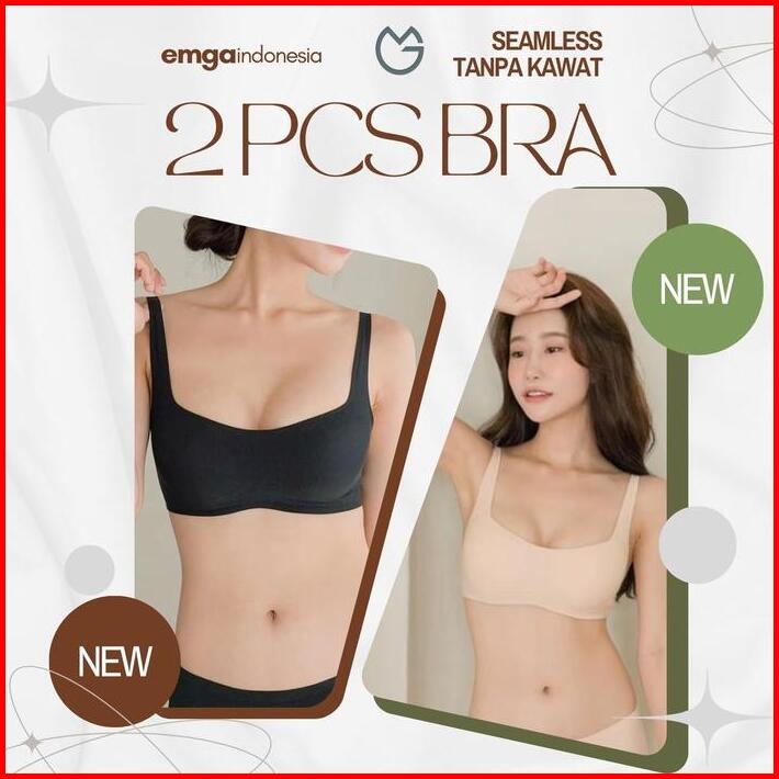 2 Pcs Bra Seamless Tanpa Kawat Tanpa Jahitan Emga Bh Bss2b Sporty Wireless Bra Pakaian Dalam Wanita Dewasa Kait Belakang