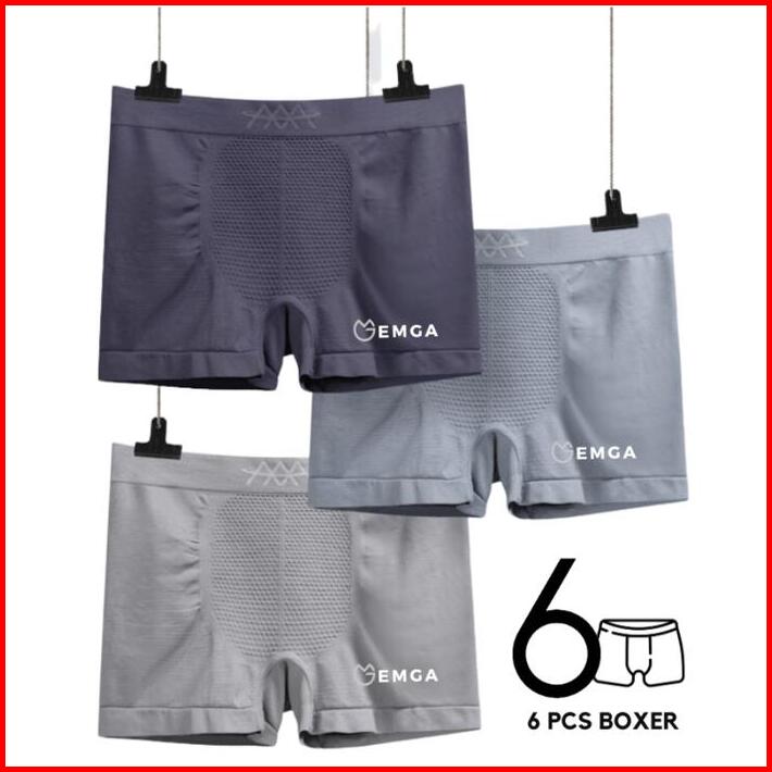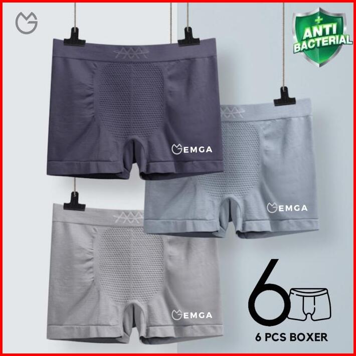 Emga Bx1c Boxer Isi 6 Celana Dalam Pria Pakaian Dalam Breathable Comfortable Seamless Kolor Briefs Pendek Cd Underwear D