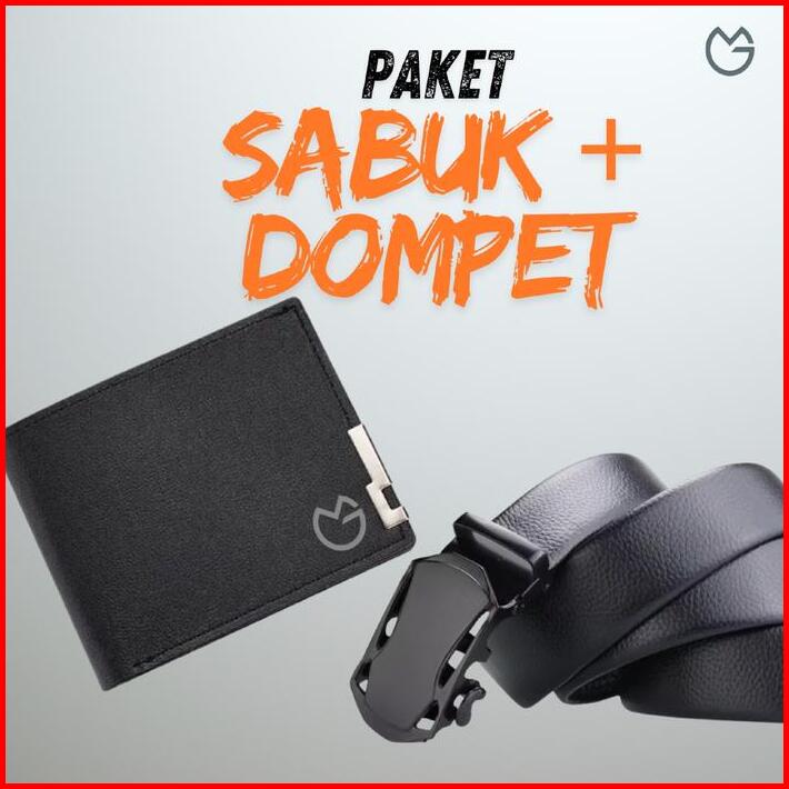 Paket Dompet Sabuk Pria Dsp1a Hadiah Kulit Sintesis Hitam Gesper Casual Men Laki Laki