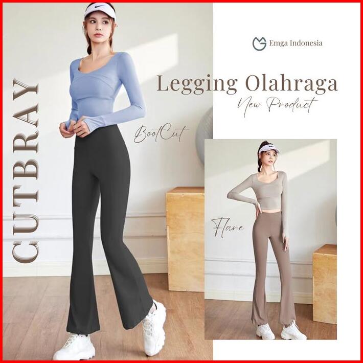 Legging Olahraga Cutbray Celana Panjang Olahraga Emga Lo1a Flare Wide Leg Highwaist Yoga Zumba Pilates Senam Aerobik Gym