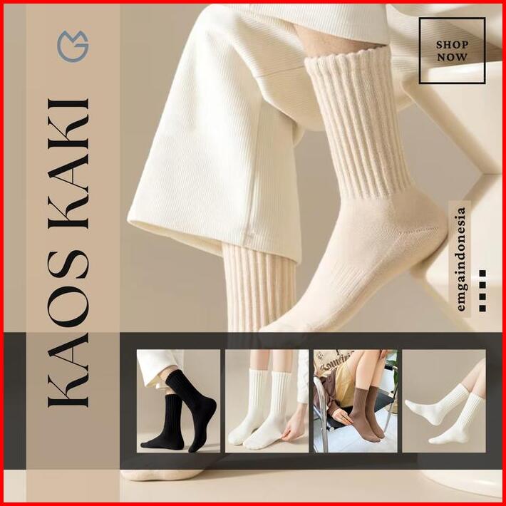 Kaos Kaki Panjang Garis Wanita Emga Kwg1a Vertical Stripes Wanita Old School Solid Color Polos Women Socks Sekolah Pergi
