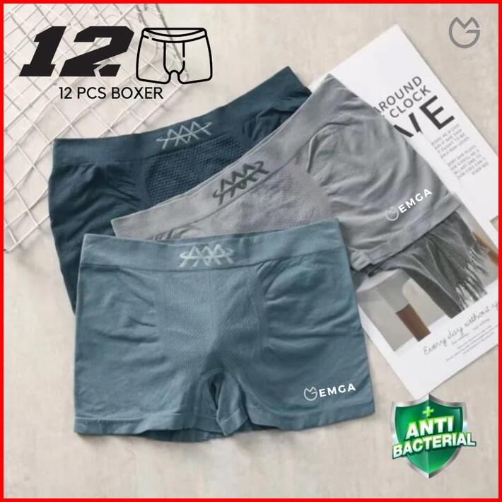 Sempak Cd Pria Isi 12 Boxer Pria Emga Bx1h Celana Pakaian Dalam Breathable Comfortable Seamless Kolor Briefs Pendek Unde