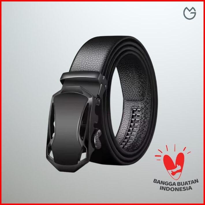 Ikat Pinggang Sabuk Pria Emga Sb1b Gesper Otomatis Kulit Hitam Kepala Buckle Stainless Besi Tactical Metal Kulit Sinteti
