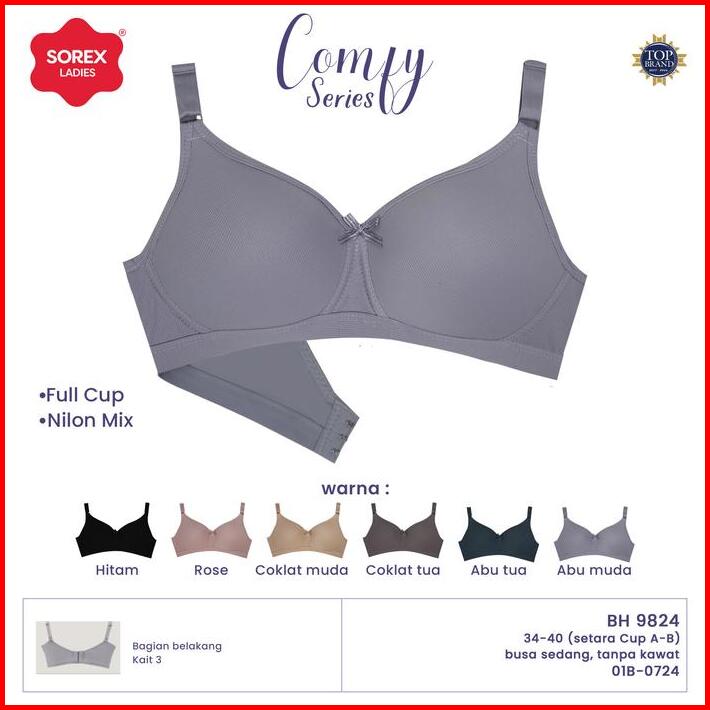 Sorex Bra Tanpa Kawat Busa Kait 3 Cup A-b Full Cup Nilon Mix Comfy Series Bra Harian Bh 9824 Lembut Nyaman