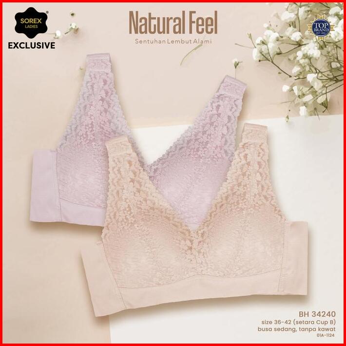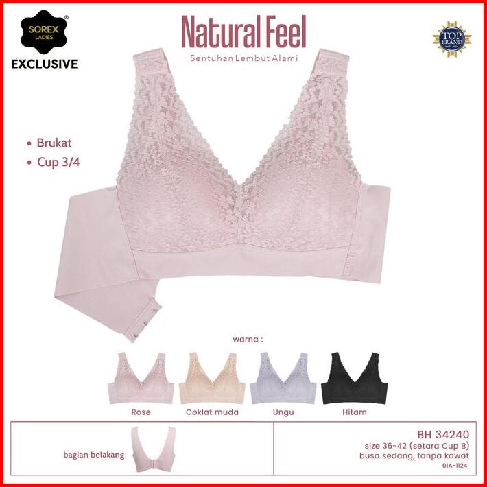 Sorex Exclusive Natural Feel Bra Brukat Tanpa Kawat Kait 3 Cup B Renda Bh 34240