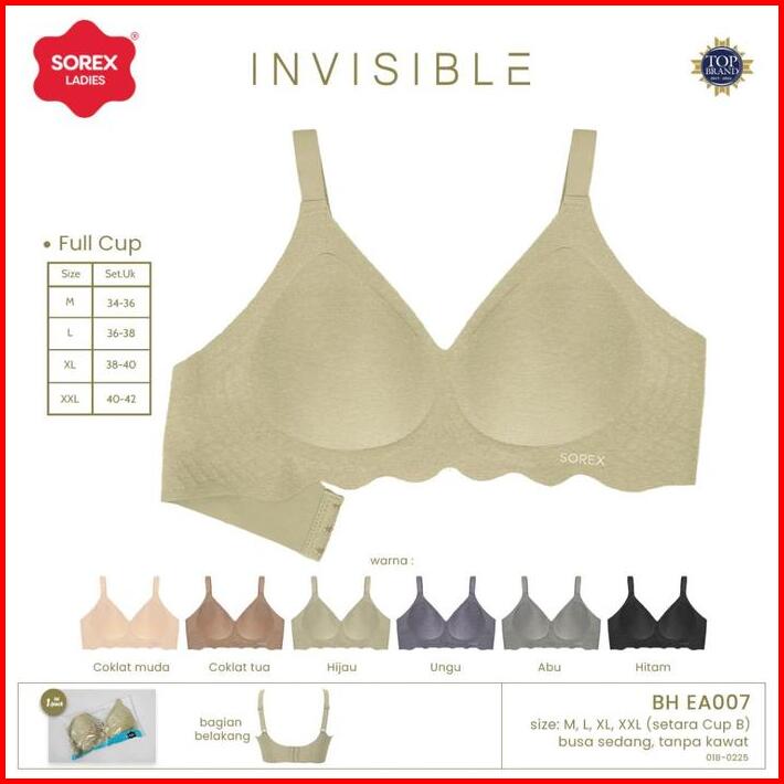 Sorex Bra Invisible Tanpa Kawat Pushup Seamless Full Cup Kait 3 Busa Sedang Cup B Ea 007