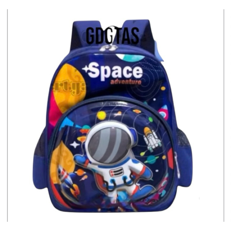 Tas Sekolah Anak PAUD TK PG Laki-Laki Ransel Astronot led lampun nyalah