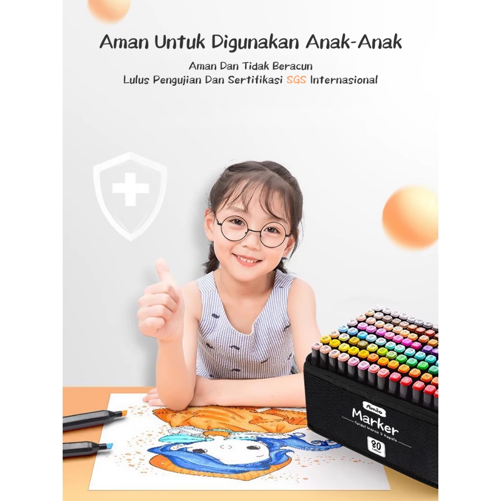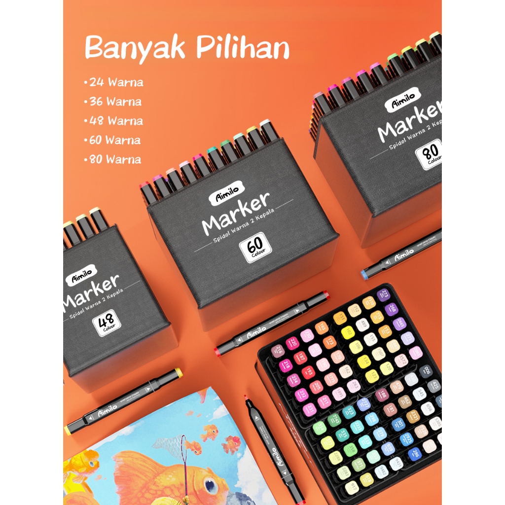 Aimilo - Spidol Warna Warni 1 Set Sketch Marker 2 Tip Touch Marker 48/60/80 Warna
