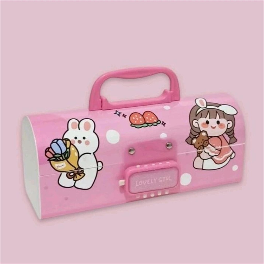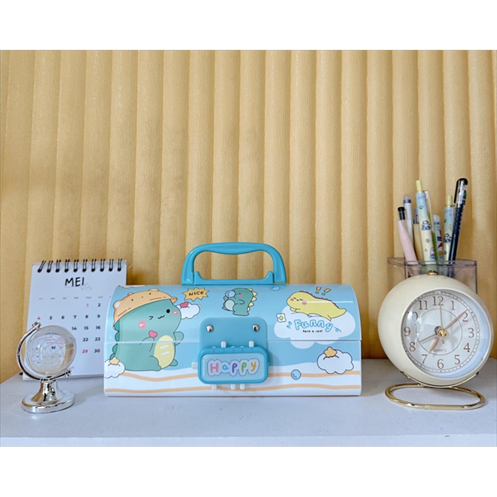 kotak tepak tempat pensil alat tulis pencil stationary case dengan kunci pin pasword passe motif gambar karakter kartun