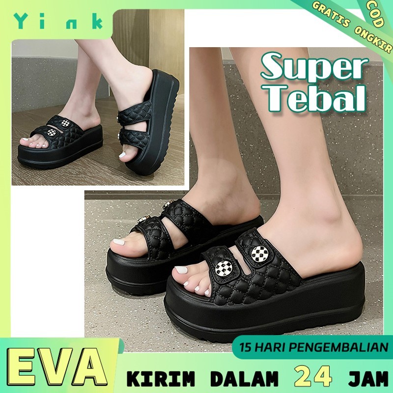 Yink Sandal Slop Wanita Tinggi 5Cm Wedges Korea Premium Eva Sepatu Sandal Wanita Kekinian Murah Cewek Elegan Ootd