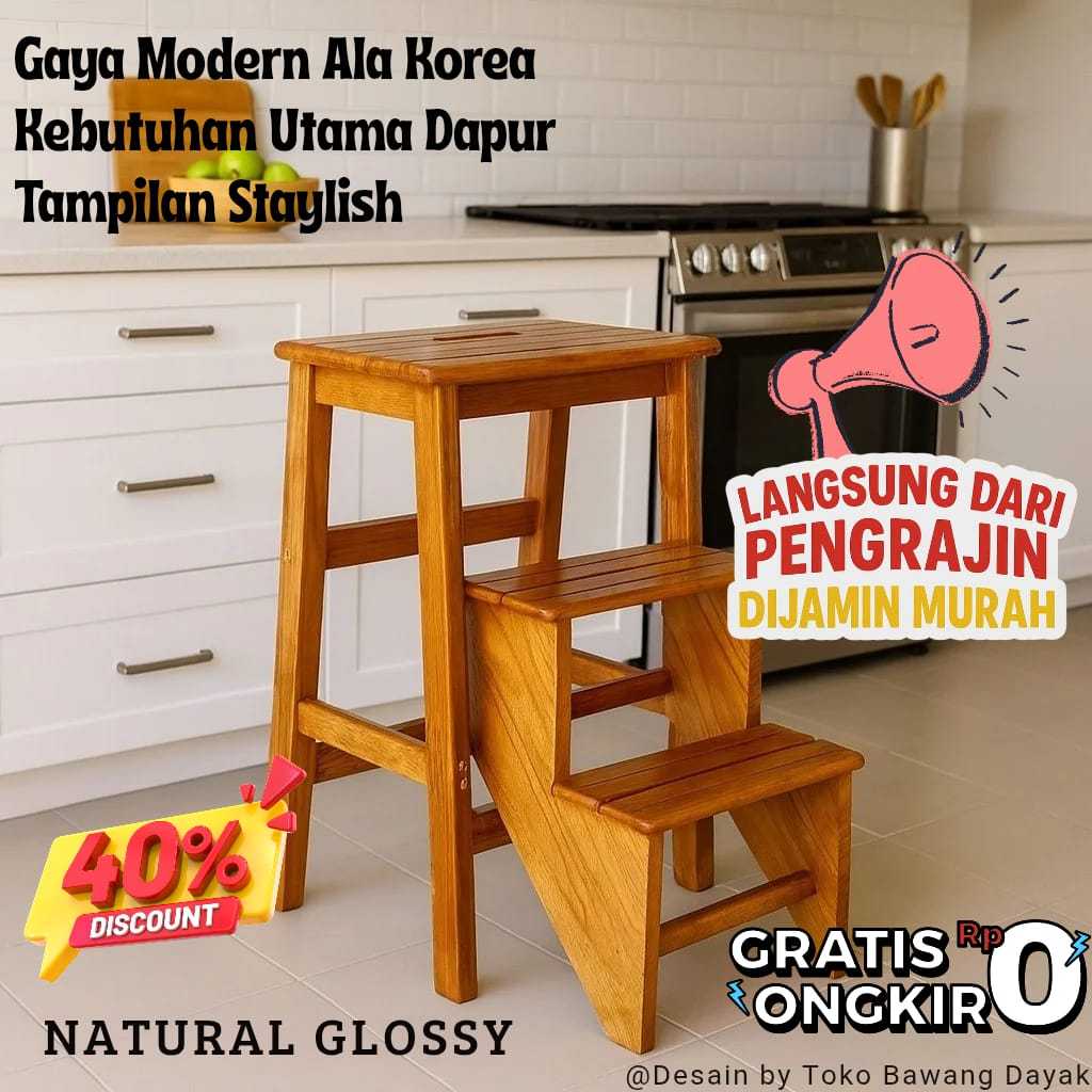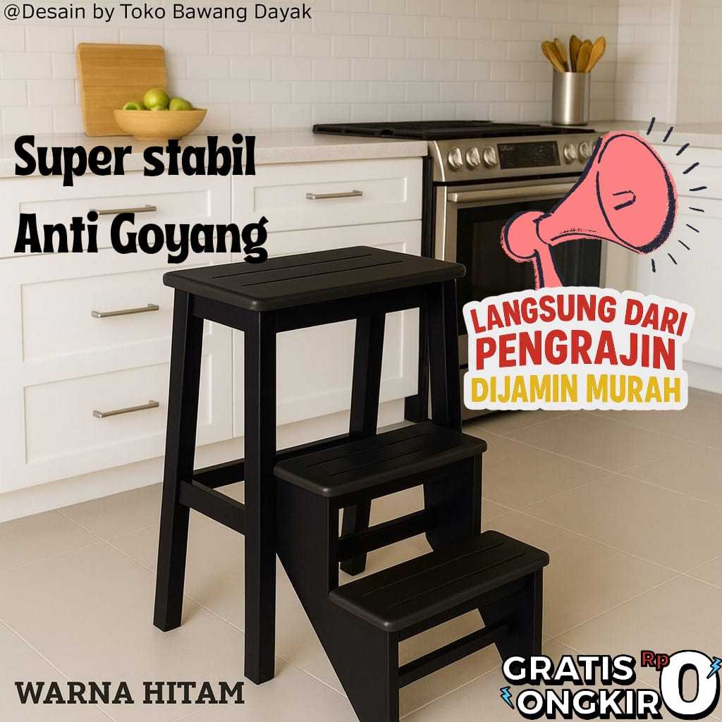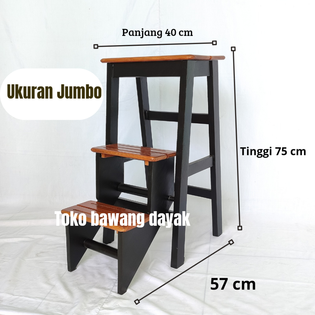 Kursi Tangga Lipat Kayu Jati Warna Putih – 3 Anak Tangga, Multifungsi 2In1, Minimalis Estetik