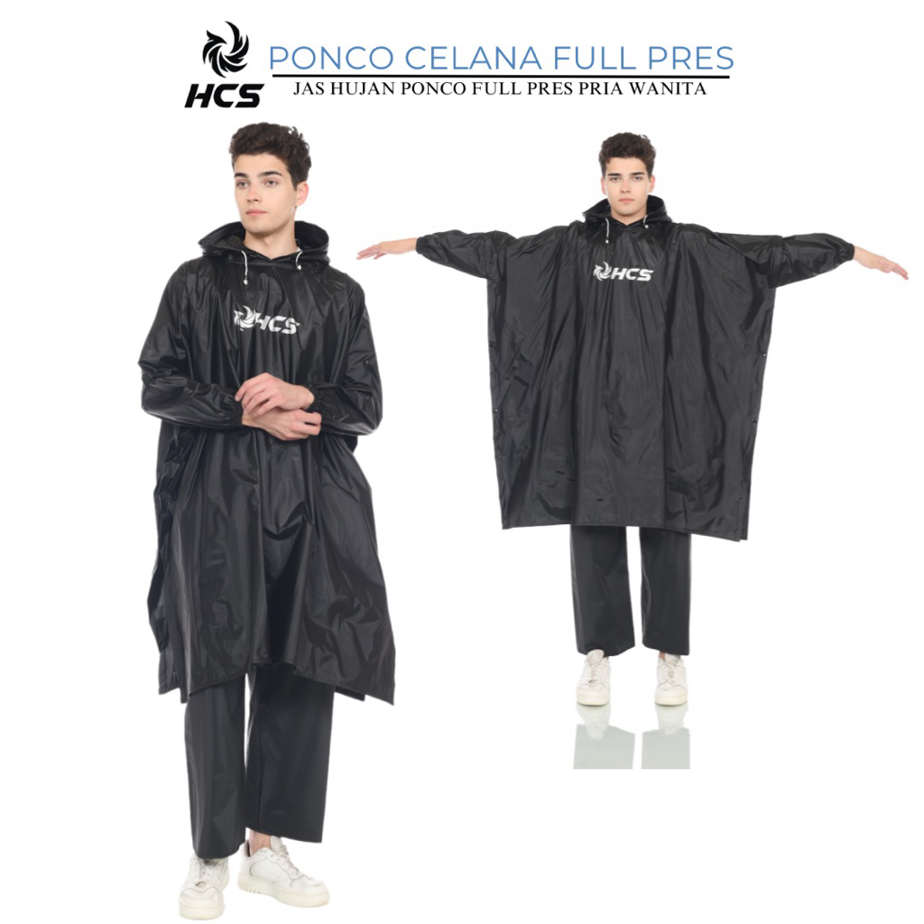 HCS Jas Hujan pria Wanita Ponco Kelelawar Stelan Celana full pres hitam