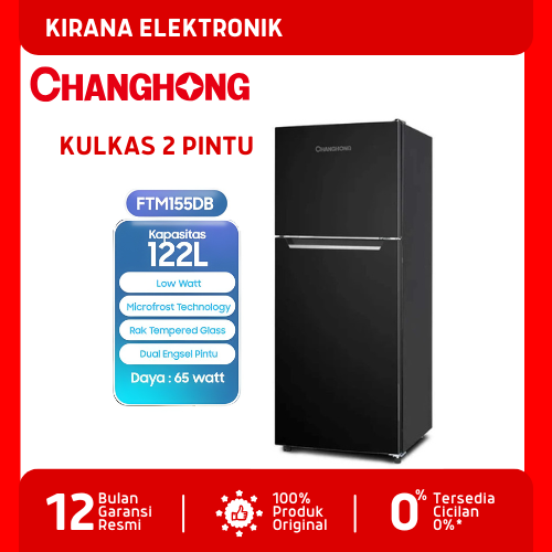 CHANGHONG KULKAS 2 PINTU GR-FTM155DB BLACK LEMARI ES 122 LITER LOW WATT PENDINGIN FREEZER MINUMAN SATU DUA PINTU TERBARU