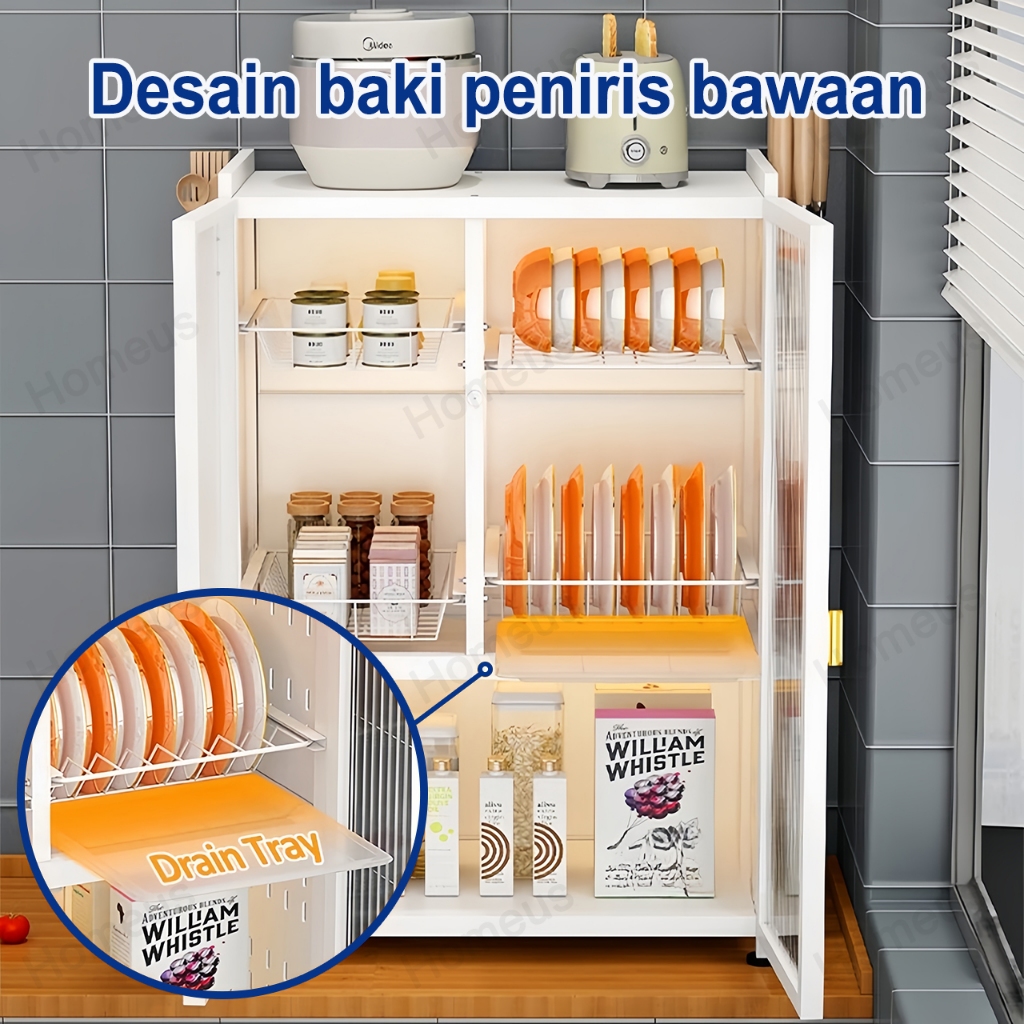 Rak Piring Homeus Minimalis Modern Plastik Tertutup Serbaguna Kaca Keramik Stainless Aluminium Lemari Dapur 4 Susun