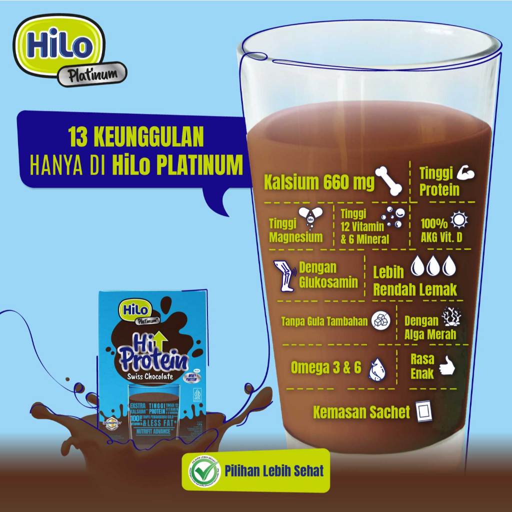 HiLo Platinum Swiss Chocolate (12 Sch) - Susu Tinggi Kalsium dengan Glukosamin & Omega 3