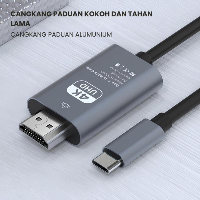 UPLU Adapter Kabel Type C to HDMI 4K UHD Converter Handphone ke TV PD 100W Fast Charging