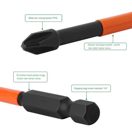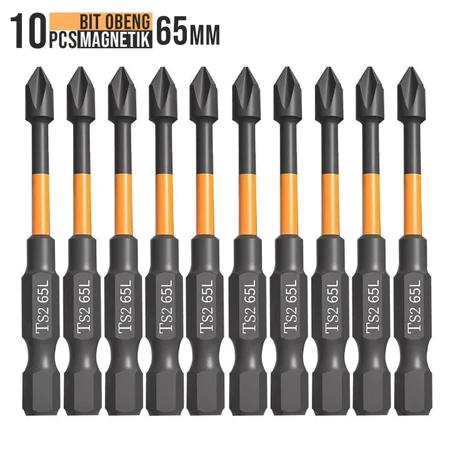 Anti Slip Screwdriver Bit Set 10Pcs PH2 Magnetic 65MM Long TS2 Toolsteel HRC63 1/4 Hex Shank Single