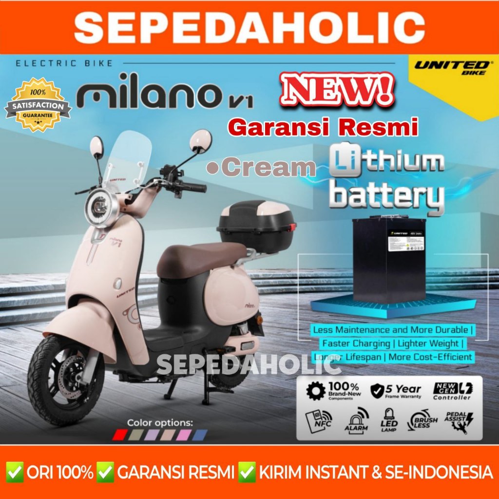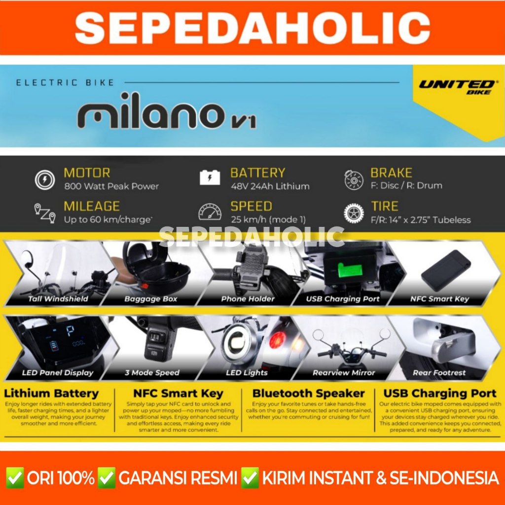 Sepeda Listrik UNITED MILANO V1 Lithium 800 Watt Electric E Bike
