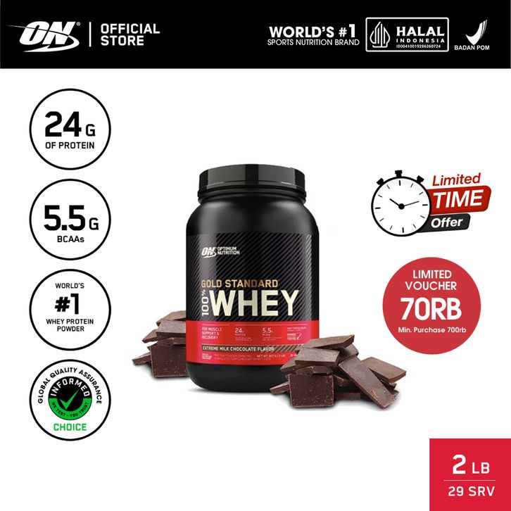Optimum Nutrition Gold Standard 100% Whey Protein 2 lbs | Primary Source Isolate - Susu Protein / Powder / Suplemen / Gy