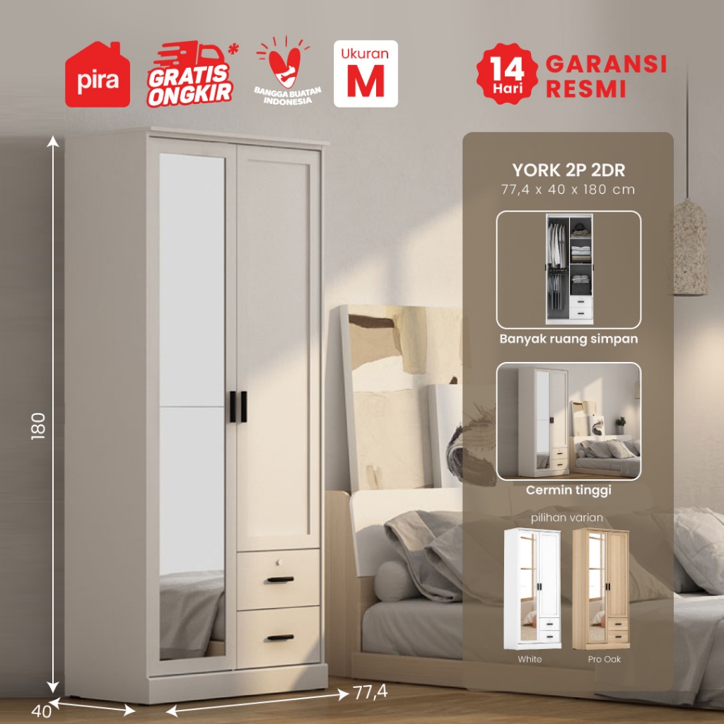 Lemari Pakaian 2 Pintu dengan 2 Laci PIRA METROPOLIS - YORK 2P 2DR Gratis Ongkir