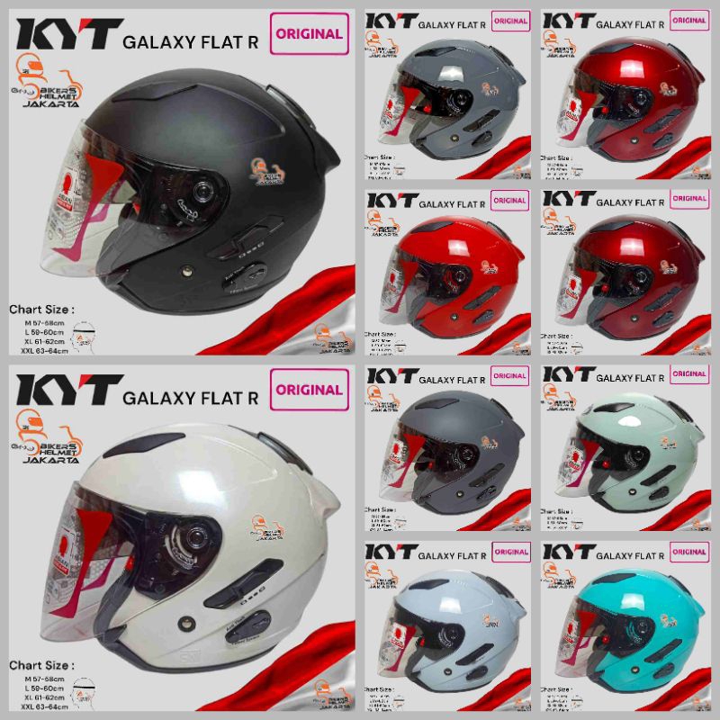 KYT HELM GALAXY FLAT R SOLID PEARL WHITE DOUBLE VISOR HALF FACE