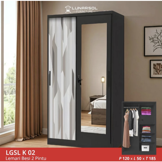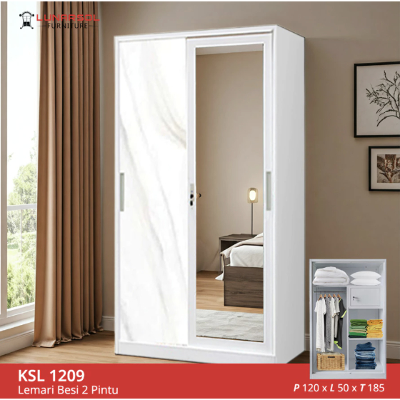 Lemari Besi Pakaian Sliding Termurah - Packing Kayu - Gratis Ongkir