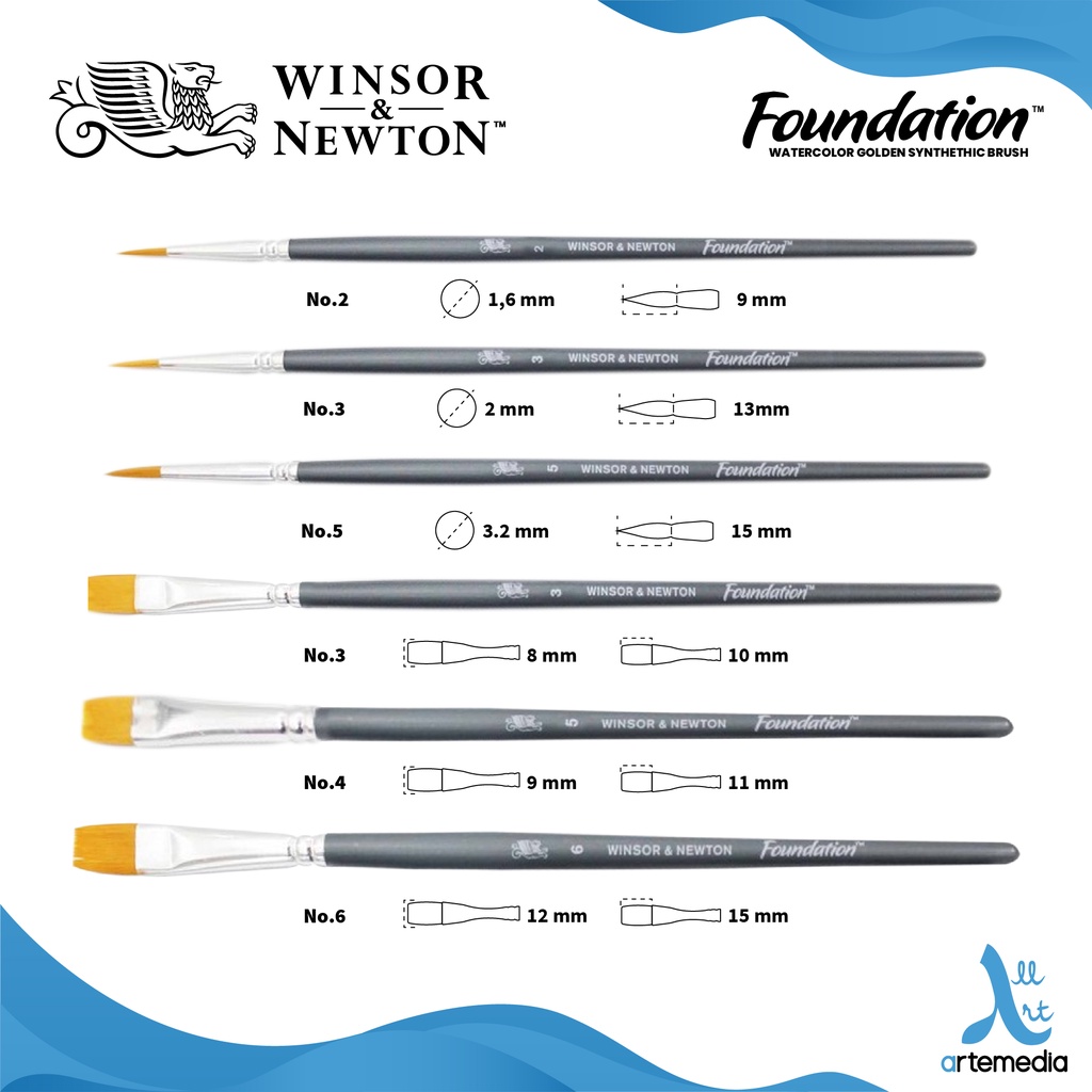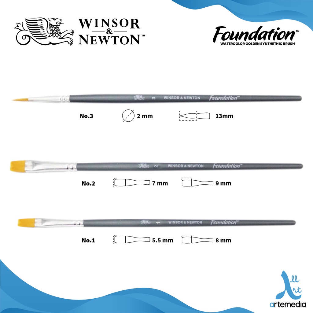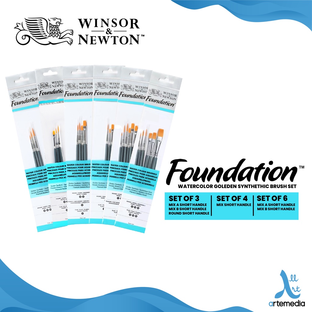 Winsor & Newton Foundation Watercolor Brush Set g00lden Synthetic Short Handle - Kuas Cat Air
