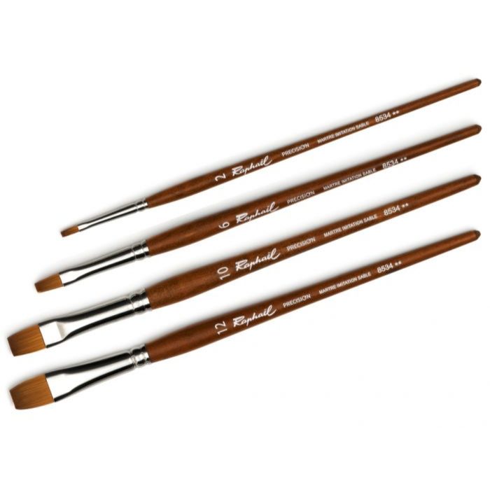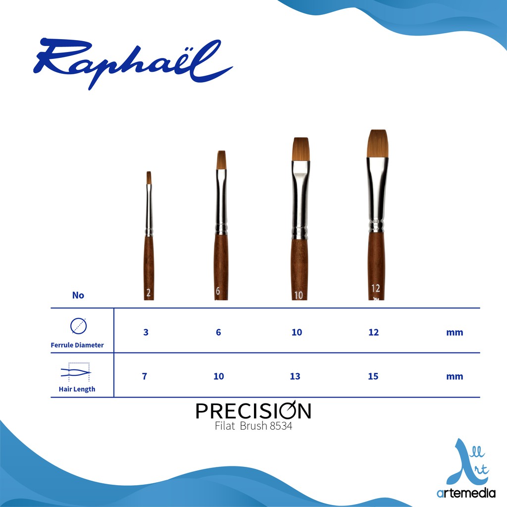 Raphael 8534 Flat Precision Synthetic Watercolor Brush Short Handle | Kuas Flat Cat Air Premium Produksi Prancis