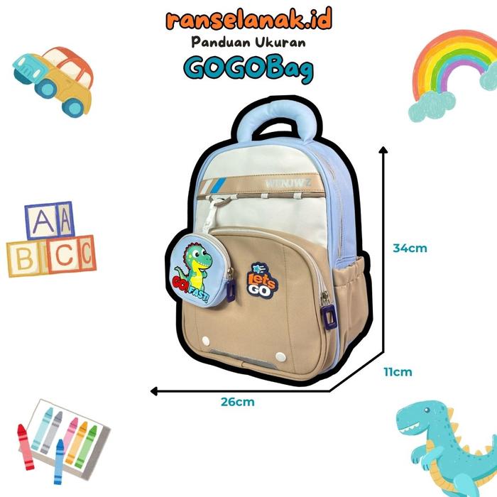 RA.ID GOGOBag - Tas Ransel TK Premium Impor Anti Air Motif Ultraman & Dinosaurus Free Pouch bahan