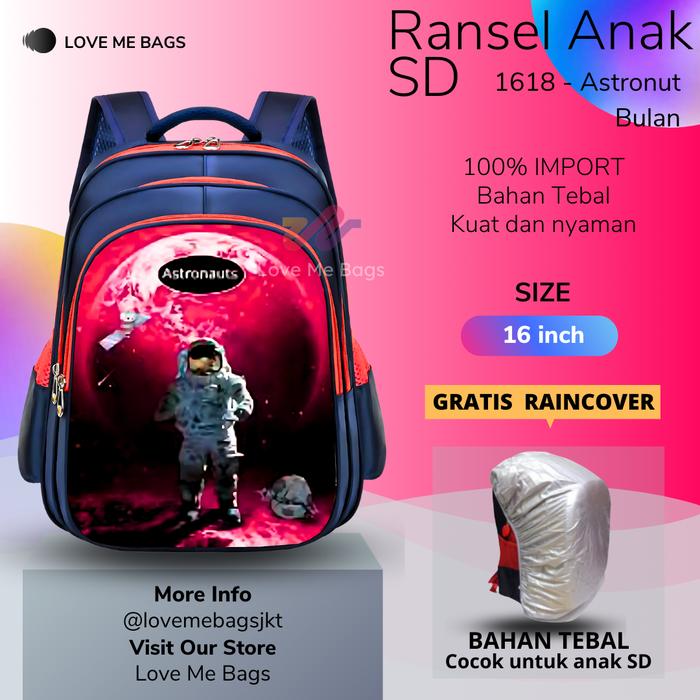 LMB Tas Anak Laki Laki Sekolah SD 16 Inch Import Karakter Lucu Astronot Bahan Nilon Premium Tebal