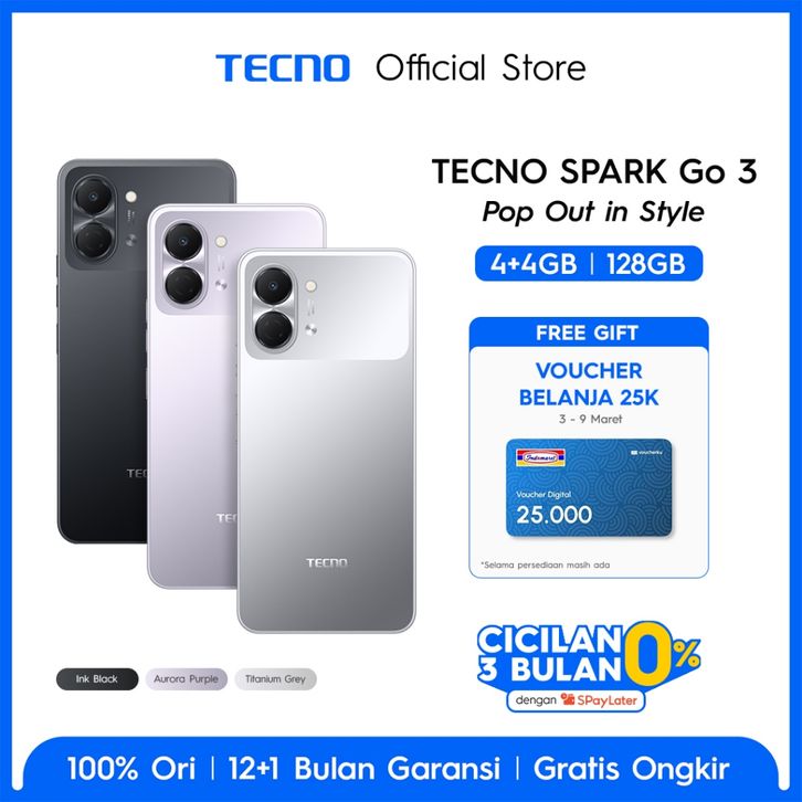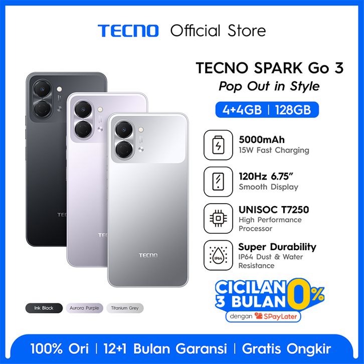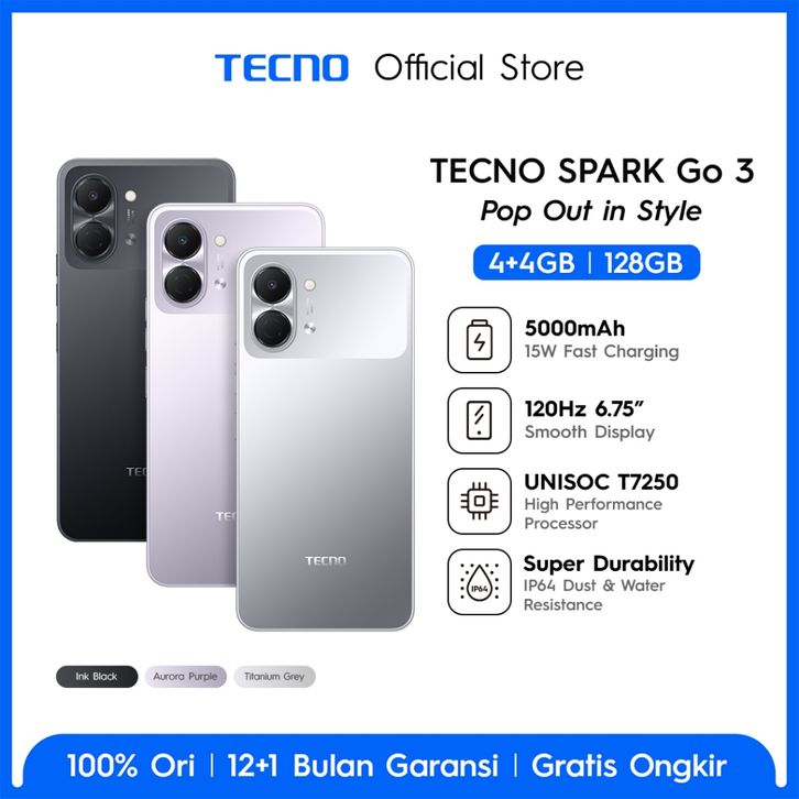 HP TECNO SPARK GO 3 4GB+4GB/128GB IP64 6.75 HD+ 120HZ SMOOTH DISPLAY 5000MAH 15W CHARGING FREELINK COMUNICATION