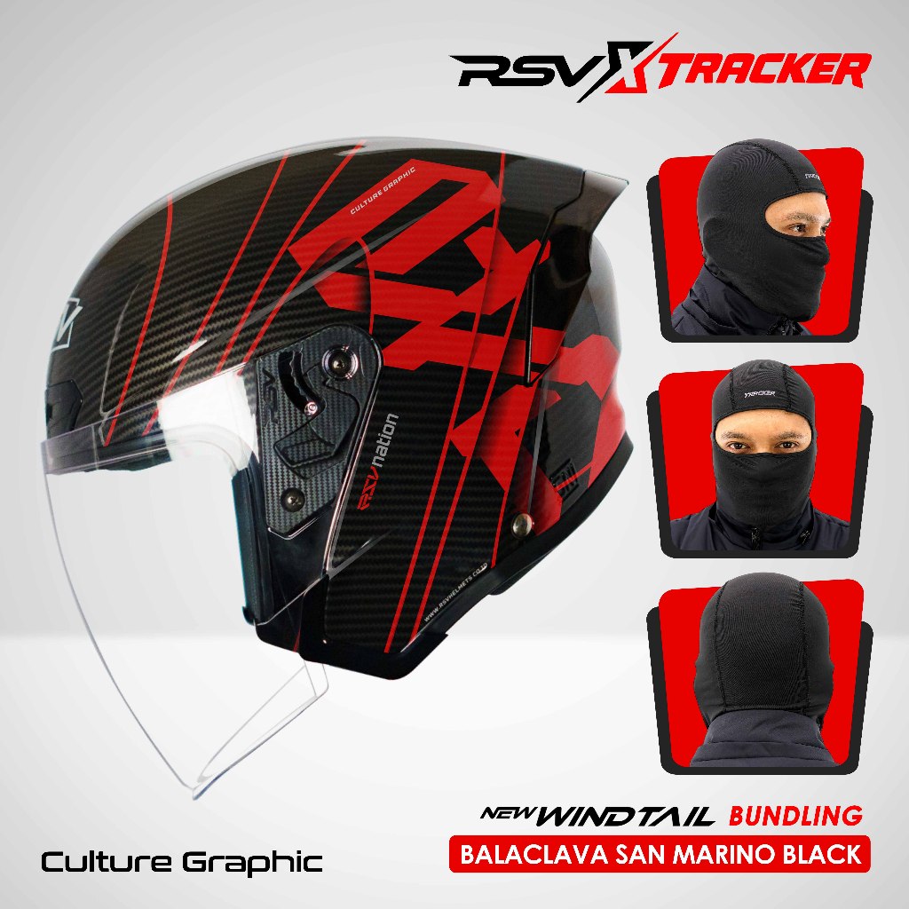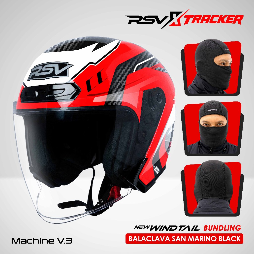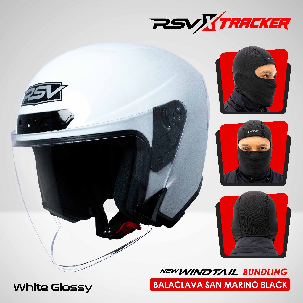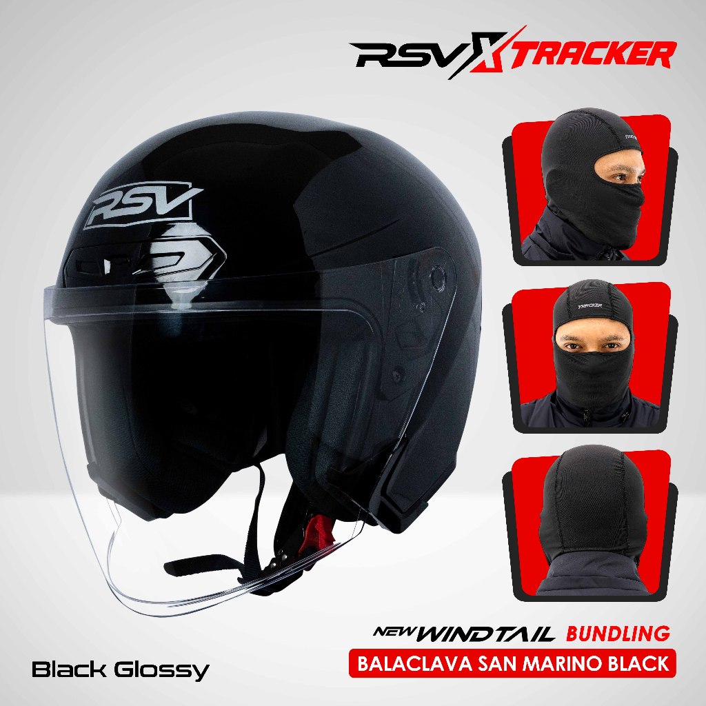 [EXCLUSIVE COLLABORATION: RSV x TRACKER] - HELM RSV NEW WINDTAIL SERIES + Balaclava San Marino Black Pelindung kepala