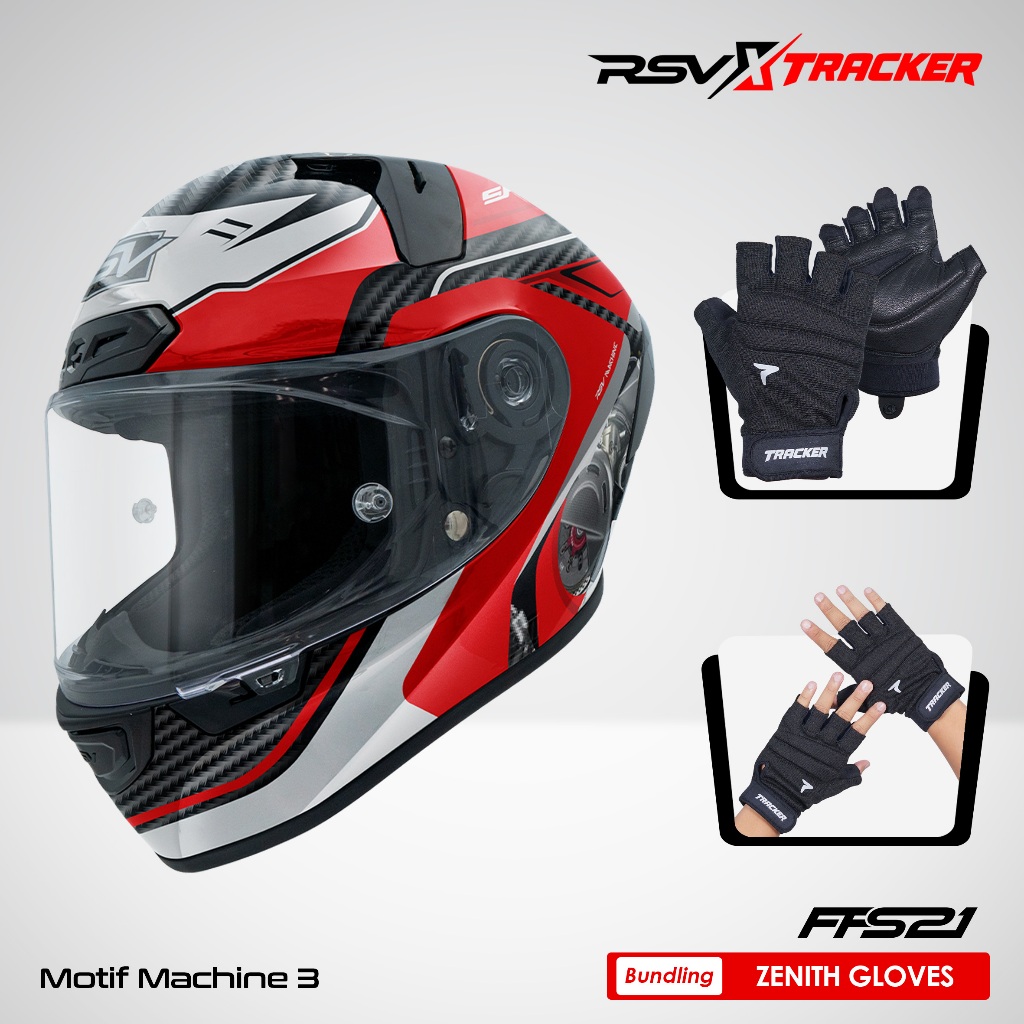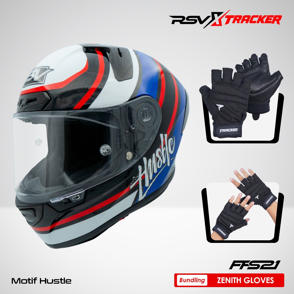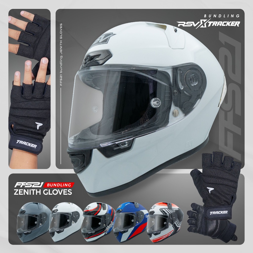 [EXCLUSIVE COLLABORATION: RSV x TRACKER] HELM FULL FACE RSV FFS21 ALL WARNA & MOTIF SINGLE VISOR + Sarung Tangan Pria T