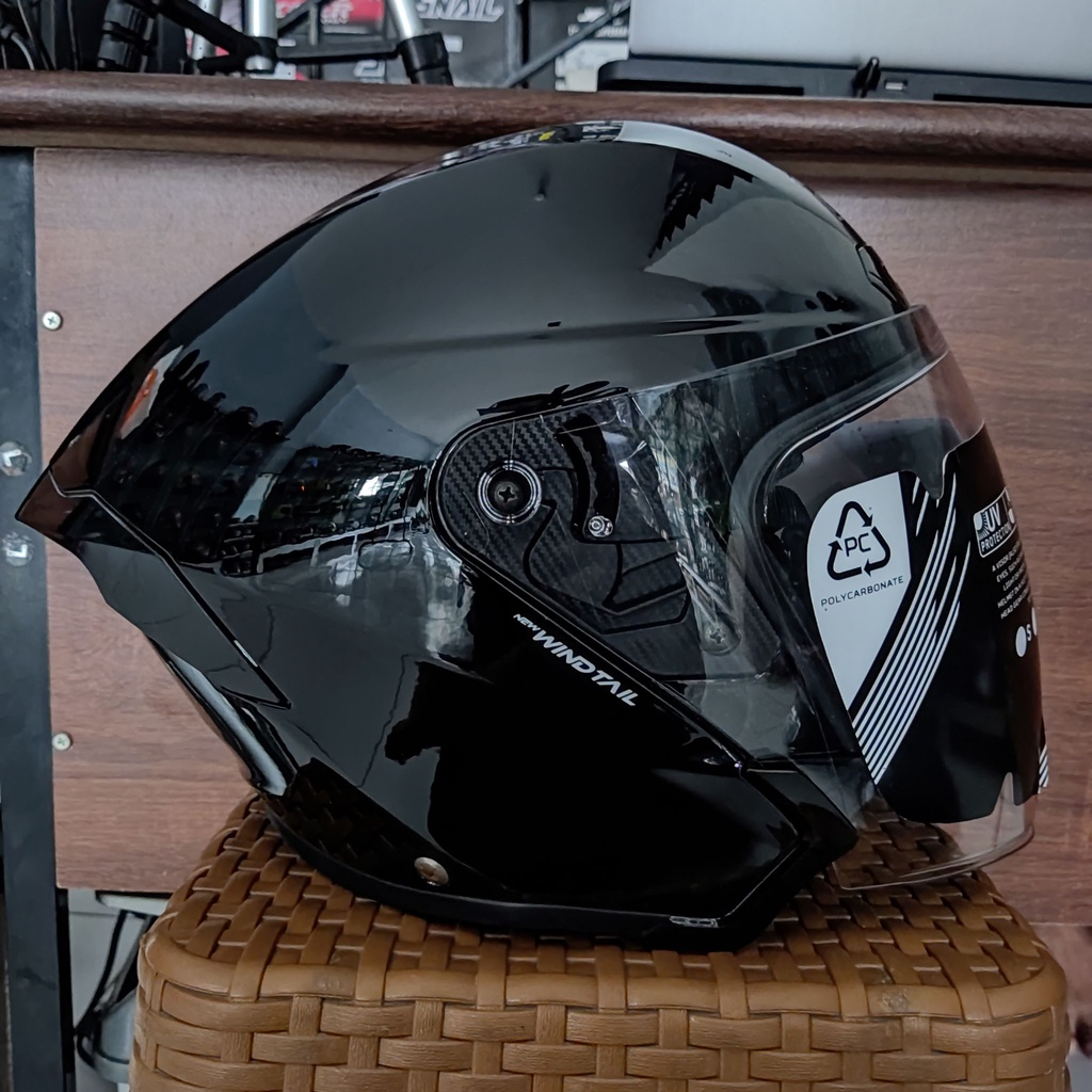 HELM RSV NEW WINDTAIL SOLID BLACK GLOSSY HALF FACE RSV WINDTAIL