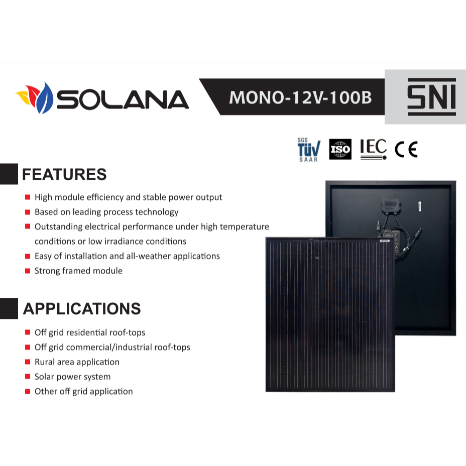 SOLANA SOLAR CELL/PANEL SURYA BLACK MONOCRYSTALLINE 12V 100WP PANEL SURYA MONOKRISTALIN SOLANA 12V 100WP ORIGINAL MURAH