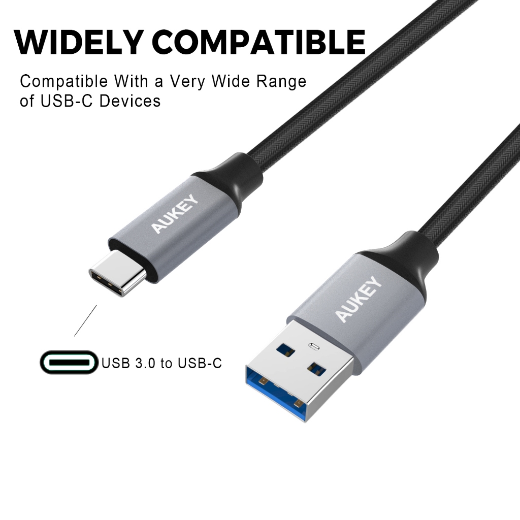 Kabel Charger Type C CB-CD2/CB-CD3 Braided Nylon USB A to USB-C Black Cable AUKEY