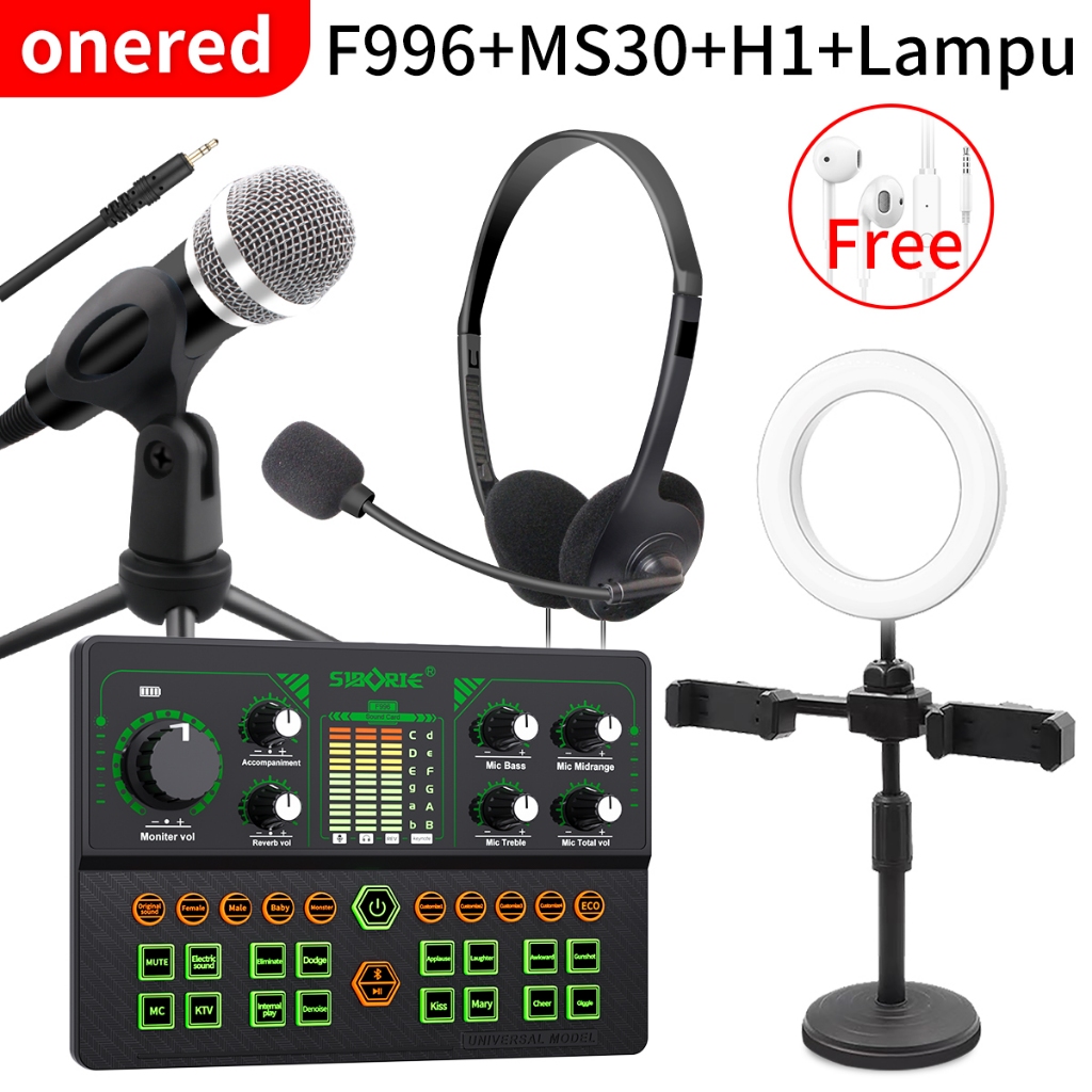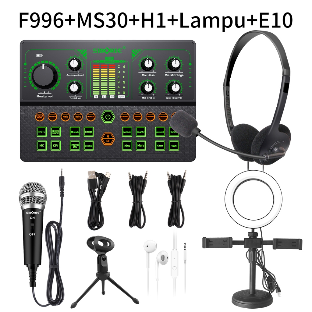 Soundcard F996+MS30+H1+Lampu Paket Komplit Soundcard Mic Headphone Lampu 4in1 Satu set lengkap | soundcard komplit live